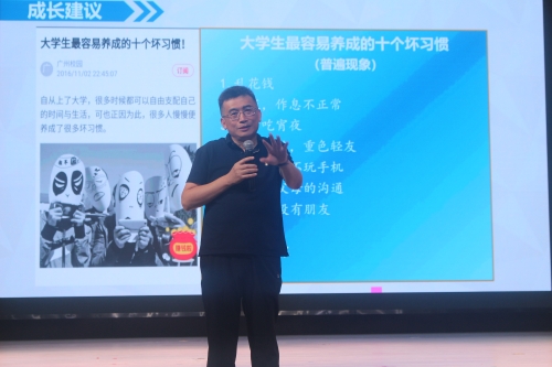 安全护航,学习助力,成就大学成长自我管理之路。9月13日晚上,教务处招生学籍科科长李静、安全工作处消防科副科长陈江龙、学生处副处长于海龙三位老师分别就学籍成绩与招生、消防与电信安全、大学生成长自我管理三个板块开展入学教育。