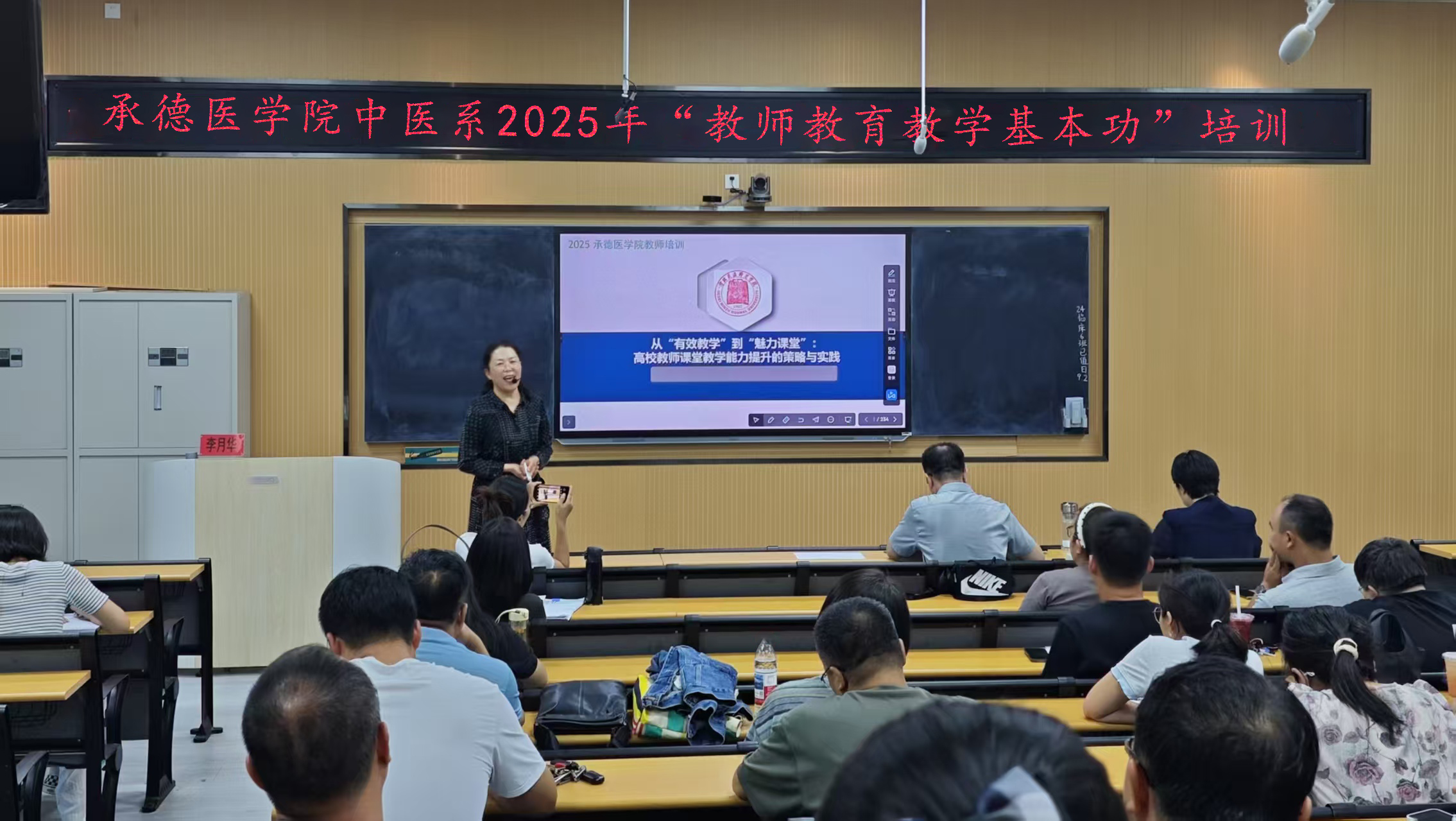 为全面提升教师教育教学能力,加强师资队伍建设,推动中医教育教学高质量发展,中医系于 2025 年9月至10月期间,分三次在教学楼 108 教室组织开展了“教师教育教学基本功” 系列专题培训。中医系全体教师积极参与,通过系统学习与深入交流,实现了教学理念更新、教学技能提升与教学经验共享的培训目标。