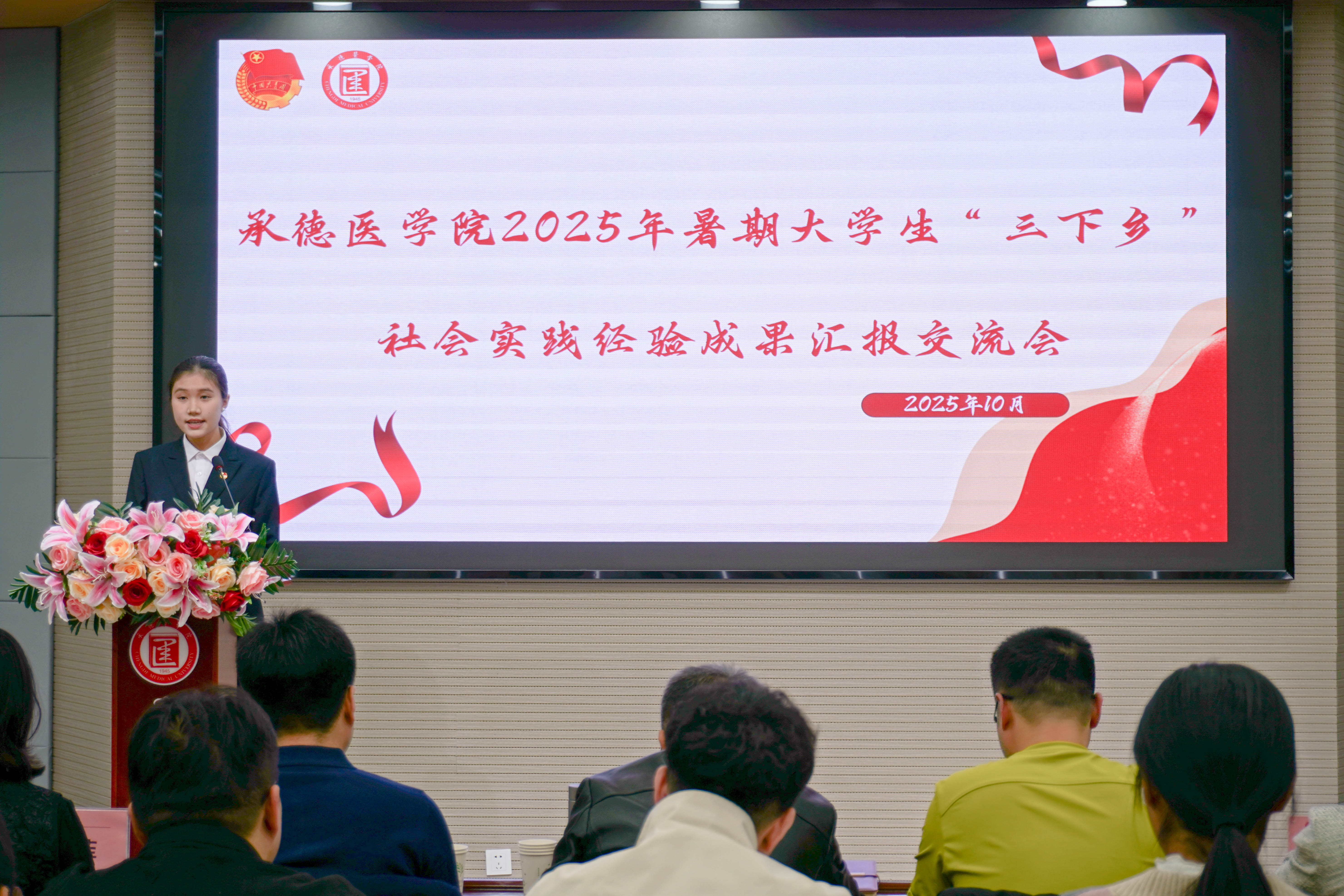 会上,主持人简要回顾了我校2025年暑期“三下乡”社会实践活动的整体开展情况。随后,各院(系)社会实践重点队伍代表依次登台,围绕基层医疗服务、红色精神传承、乡村振兴赋能等核心领域,分享了实践过程中的鲜活案例、丰硕成果与深刻感悟。从田间地头的健康义诊到红色基地的精神洗礼,从乡村发展的实地调研到民生需求的精准回应,学子们用行动诠释奉献,用青春书写担当,充分展现了承医学子甘于奉献、勇毅有为的青春风貌。经现场评审,“红医向党,医起振兴”社会实践服务团等12支队伍,荣获“2025年社会实践卓越示范队”称号。