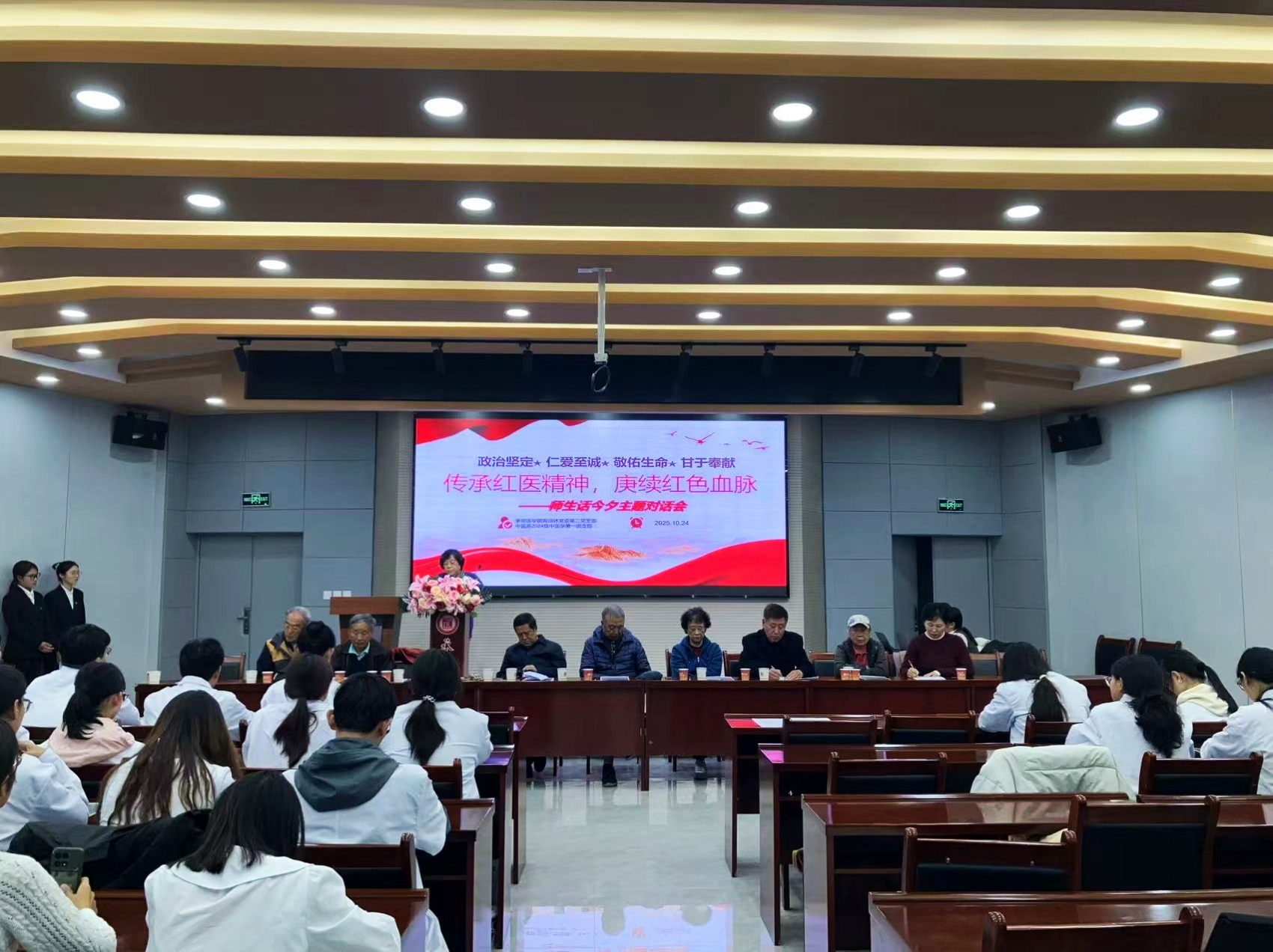 24 日下午,离退休第二党支部与中医系 2024级中医学第一团支部在“一站式”学生社区服务中心214 室联合开展“传承红医精神 庚续红色血脉 —— 师生话今夕”主题活动。