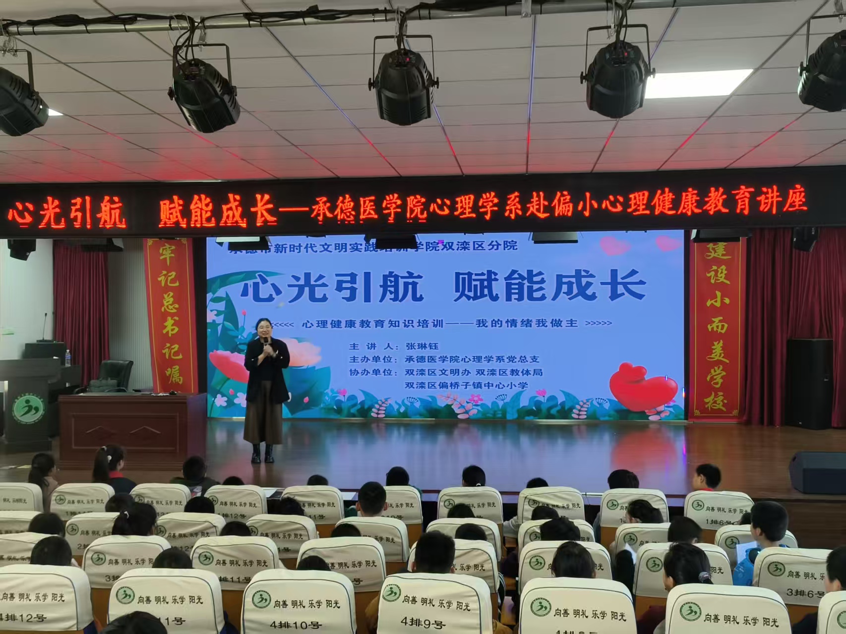 为切实帮助受灾学生缓解心理压力,恢复正常学习生活,心理学系党总支赴双滦区偏桥子镇中心小学开展爱心捐赠暨“心光引航 赋能成长”心理健康教育知识讲座。此次活动依托承德市新时代文明实践培训学院双滦区分院,由承德医学院心理学系主办,双滦区文明办、双滦区教体局承办。