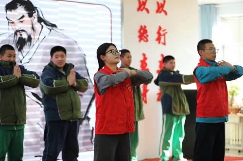 2025年11月13日,中医系“中医药文化三进一敬”系列活动的首场活动走进校园,在河北民族师范学院附属中学正式启动。本次活动以“易筋强体质,正脊护未来”为主题,通过趣味科普、互动体验与功法教学相结合的形式,为在校学生带来了一堂生动而深刻的中医药文化启蒙课。