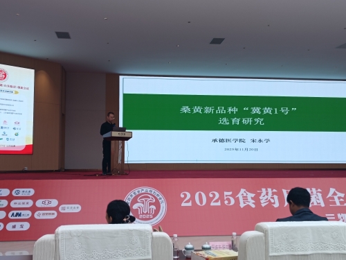 在专题报告会环节,宋永学以《桑黄新品种“冀黄1号”选育研究》为题作了专题报告。他系统介绍了项目背景和目标、详细讲解了“冀黄1号”选育过程与栽培技术要点,并对其推广应用前景进行了展望。会上,其他专家学者围绕基因编辑、菌渣资源化利用、药食同源、桑黄产业发展等前沿方向分享了研究成果。