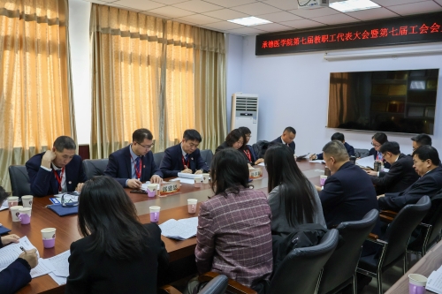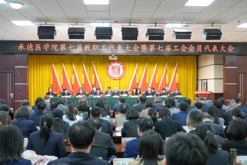2025年12月19-20日,承德医学院第七届教职工代表大会暨第七届工会会员代表大会(以下简称第七届双代会)在学校图书馆八楼多功能厅隆重召开。本次大会是在学校建校 80 周年的历史起点上,深入学习贯彻落实党的二十大及二十届历次全会精神,巩固拓展深入贯彻中央八项规定精神学习教育成果,收官“十四五”、谋划“十五五”,面向建设医科大学全面布局、高位推进的关键时期召开的一次承前启后、继往开来的重要会议。全校教职工代表与工会会员代表齐聚一堂,共商学校改革发展大计,共绘高质量发展蓝图。