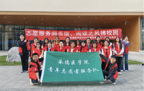 为深入贯彻落实习近平总书记关于“要倡导多读书、建设书香社会,不断提升人民思想境界、增强人民精神力量”的讲话精神,进一步弘扬志愿服务精神,营造良好的校园阅读氛围,基础医学院2023级预防医学第一志愿服务队联合承德市图书馆开展以“志愿服务润书馆,阅读之风拂校园”为主题的志愿服务系列活动。基础医学院辅导员周腾飞老师、崔岳老师和志愿服务队全体成员参加活动。