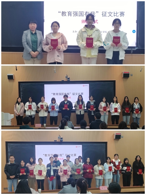 为深入学习领会党的二十届三中全会精神和全国教育大会精神,塑造立德树人新格局,培养担当民族复兴大任的时代新人,拓展思想政治理论课实践育人的空间和阵地,马克思主义学院形势与政策教研室于2025年3月至4月在全校2024级本科生中举办“教育强国有我”征文比赛,并于4月24日举行颁奖仪式,马克思主义学院3名教师参加了本次颁奖仪式。