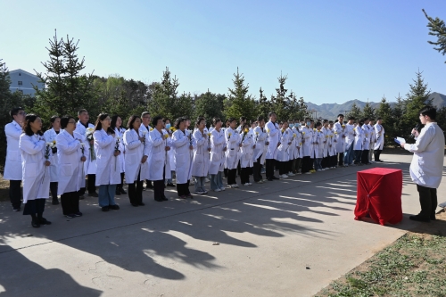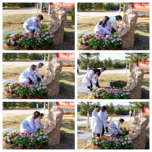 活动最后,现场全体师生向实验动物慰灵碑献花,行鞠躬礼,向为医学研究献身的实验动物致敬。