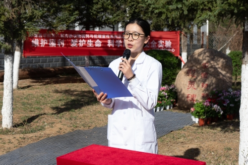 24日,实验动物现场纪念活动在实验动物中心楼前北侧广场的“实验动物慰灵碑”前举行。来自学校科技处、中药学系、基础医学院、研究生学院等部门的教师和学生代表近60人参加活动,活动由实验动物中心副主任赵长祺主持。