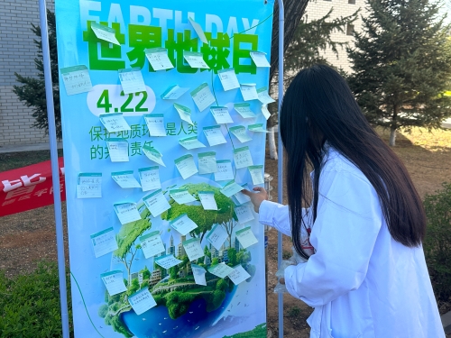 22日,在一站式学生社区服务中心前开展了关于“世界地球日”的宣传活动,并设有“‘贴’心环保,守护地球”打卡活动。同学们积极参与,深刻领悟了世界地球日的重要意义,为校园注入了绿色环保的新活力。