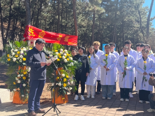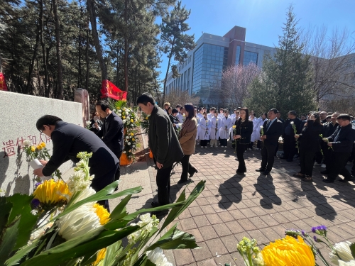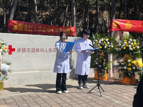 2025年4月2日上午,基础医学院师生在位于我校解剖楼前广场的“承德市遗体和人体器官捐献纪念园”前举行 “遗体和人体器官捐献”缅怀纪念活动。河北省红十字会三献工作事务中心主任张江涛,河北省器官捐献总负责人、河北医科大学第三医院OPO负责人任贵军,承德市卫生健康委员会副主任张鑫,承德市红十字会党组书记、常务副会长曾强及遗体捐献者家属代表受邀参加活动,学校党委常委、副校长刘刚致辞。基础医学院师生代表200余人参加活动。