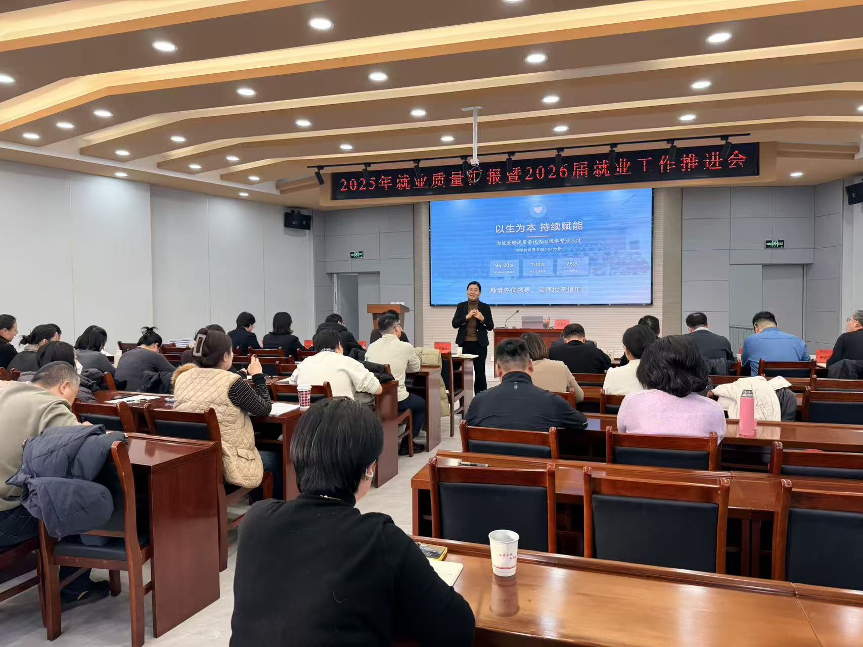 为全面总结学校2025年毕业生就业工作成效,精准部署2026届毕业生就业攻坚任务,进一步凝聚全校共识、压实就业责任,1月7日,我校于学生一站式社区服务中心214会议室召开2025年就业质量汇报暨2026届毕业生就业工作推进会。学校党委常委、副校长王瑞婷出席会议,学生处、教务处、各院系负责人,主管学生工作副书记,毕业年级辅导员、大学生职业发展教研室全体教师参加会议。