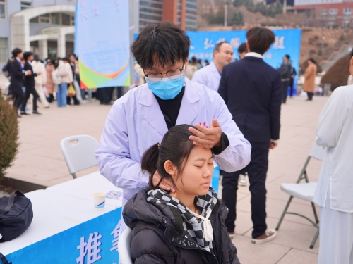 启动仪式结束后,义诊、耳穴体验、推拿按摩、科普宣传、互动游戏五大中医特色体验区正式开放。各体验区分工明确、有序开展,为师生提供集诊疗服务、特色体验、知识科普、趣味互动于一体的全方位中医药文化体验,让国医智慧真正走进师生日常生活、融入校园文化。