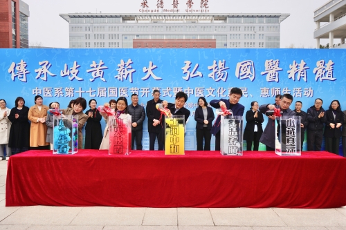 3月17日下午,我校中医系在学校明德广场隆重举行第十七届国医节开幕式,同步开展“传承岐黄薪火,弘扬国医精髓”主题中医文化惠民及惠师生活动。学校党委副书记张学良,学校党委常委、副校长刘刚、王瑞婷出席活动,各职能部门负责人、各二级院系书记、副书记、教师代表、中医系全体教职工、在校生到场参加活动。