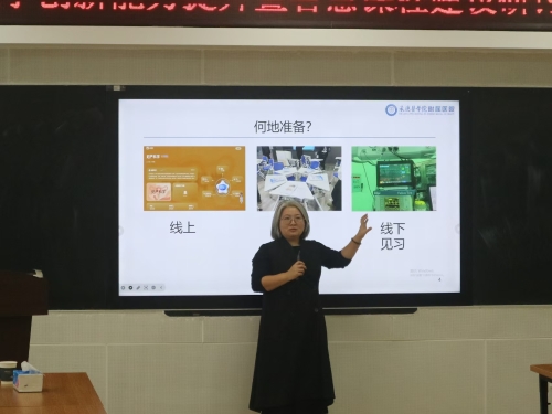 随后,龚明玉教授分享了智慧课程建设经验。她聚焦AI技术与实验教学的深度融合,介绍了通过AI赋能线和任务流水线,将案例教学、翻转课堂等教学手段融入实验教学的实践路径,为智慧课程建设提供了可借鉴、可推广的实践方案。分享结束后,参会教师展开深入研讨,积极探索教学创新路径。