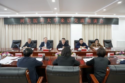 为深入贯彻落实河北省关于支持医学院校发展提升的工作部署,搭建院校交流互鉴平台,4月2日下午,河北医科大学党委书记于树江及相关负责同志莅临我校,在行政楼312召开专题交流座谈会。学校党委副书记、校长李玉红、党委常委、副校长刘刚及相关职能处室负责人参加座谈,会议由刘刚主持。